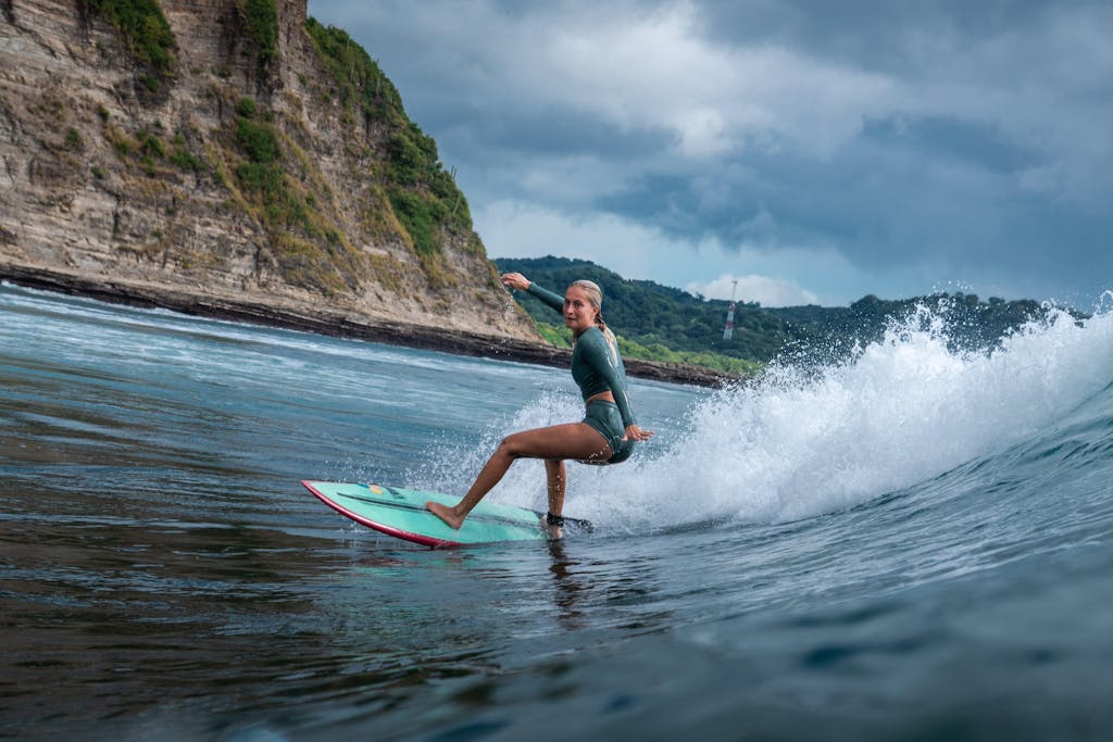 I’ve been surfing in my AFATO Set in Sri Lanka and now in Nicaragua. The fabric is really soft on my skin and feels super comfortable. It stays perfectly in place without needing to adjust, even in bigger surf. And the sage green color is just stunning!